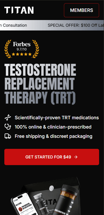 Get started with Titan TRT, the scientifically-proven testosterone replacement therapy designed to optimize your health. Our process is 100% online, connecting you with licensed clinicians who prescribe personalized protocols to boost your vitality and performance from the comfort of your home.